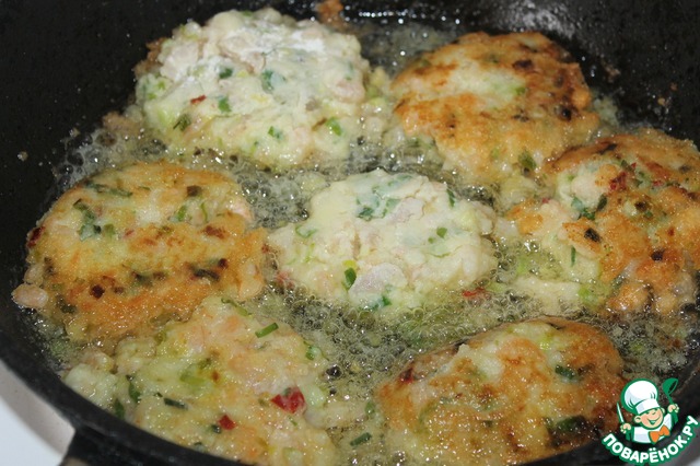 Обжарить на растительном масле до золотистой корочки, выложить на бумажное полотенце, чтоб оно впитало излишки жира
