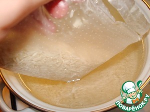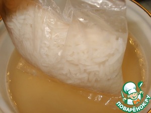 Для приготовления риса опускаем пакетик с рисом в кипящую, подсоленную воду, не открывая его. Варим на медленном огне 12 минут.