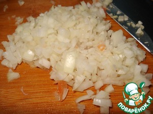 Пока варится рис займемся котлетами. Филе мелко порежим.