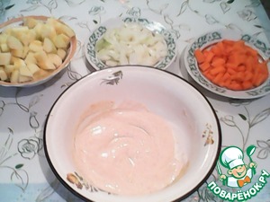 Готовим маринад для овощей: Смешиваем майонез и специи.