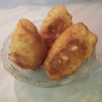 На середину лепёшки разместить любую начинку и слепить пирожок, любой формы.