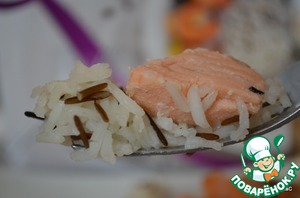 Белый с черным рис и великолепная красная рыбка. Поистине -домашний шедевр.