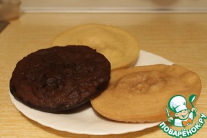 Вот такие "плюшечки" получились. Для торта я их разрезаю на два-три слоя, формирую необходимую форму торта, выкладывая последовательно слои разных цветов, промазывая их кремом.
