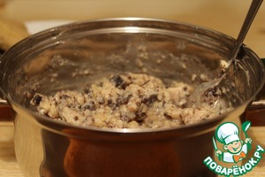 Крошим наши "плюшечки" на мелкие кубики. Талое сливочное масло растираем со сгущенным молоком. Я обычно использую не всю баночку, т. к. очень сладкое не люблю, гр. 350. Полученный крем смешиваем с кубиками.