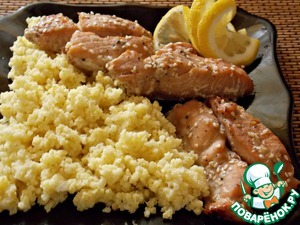 Теперь, когда нам надо покормить свою семью, да и самой подкрепиться, мы сначала ставим воду для пшена в пакетиках от "Мистраль" и варим согласно инструкции на упаковке. Кто-то скажет, что пшено и рыба это как-то, по меньшей мере, странно. Но уверяю Вас, что именно с пшеном эта пикантная рыба сочетается лучше всего. По крайней мере, в нашей семье.