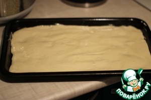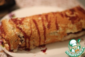 После: отделяем основу рулета от противеня (чтобы удобно было завернуть). Смазываем основу вареньем или кремом. Заворачиваем.