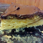 Мы не очень тыквоеды, а в пироге тыква все же достаточно сильно чувствуется. Так же глазурь вышла какой-то слишком жидкой и почти совсем не застыла. Впрочем на её вкусе это никак не отразилось (шоколад сложно испортить), так что её мы сняли с пирога и съели, а вот основу пришлось выкинуть.