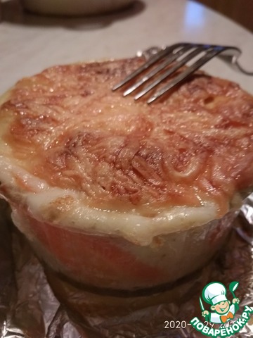 Растопите столовую ложку сливочного масла и смажьте рамекины изнутри, кусочки рыбы положите в формы, перекладывая их половинками помидоров, ломтиками лука и тонко нарезанными колечками моркови. Немного посолите и поперчите. Закройте крышками и поставьте в духовку, разогретую до 220С на 20 минут
