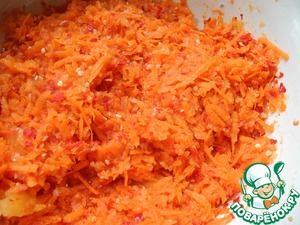 • Морковь натереть на терке (можно пропустить через мясорубку).