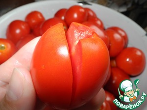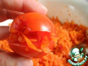 • Начинить половинку помидора морковно-чесночно-пе речной смесью.