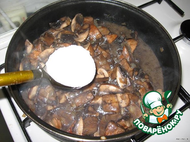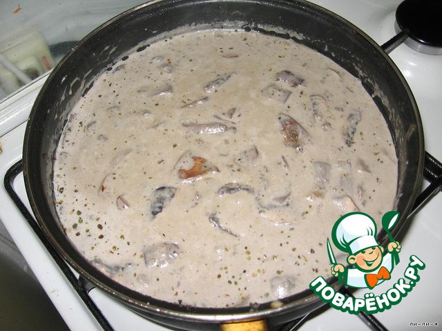 В пятом шаге написано:"Добавить 1 стакан кипятка, сливки, специи.