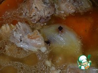 Варим на медленном огне примерно 2 часа, снимая пенку. Мясо кролика должно очень хорошо развариться, стать мягким-мягким. |