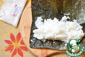 Рыба готовится быстрее, чем рис Кубань, но именно этот рис вкусен в сочетании с нори.