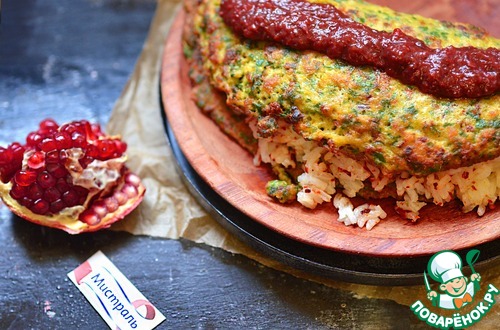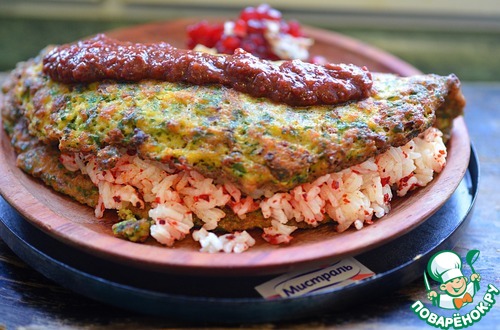 Пряный рис выложить на рыбную лепёшку с одной стороны.