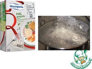 В подсоленную кипящую воду опустить два пакетика риса Кубань от "Мистраль". Варить на медленном огне 25 минут. По окончании варки, вынуть пакетики и дать стечь воде. Гарнир готов!