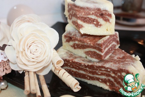 Берем силиконовую форму и поочередно ложками выкладываем обе творожные массы.