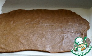 Выложить тесто на лист бумаги для выпечки и раскатать.