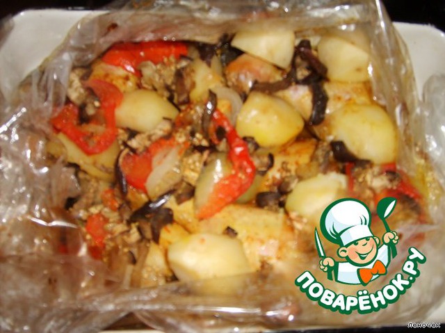 За 10 минут до готовности рукав можно разрезать и снова поставить в духовой шкаф, чтоб картошка немного запеклась. -