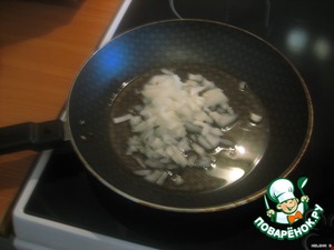 Мелко шинкуем репчатый лук и обжариваем его на подсолнечном масле.
