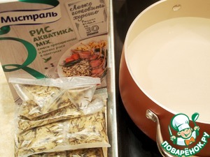 В кипящую воду кладем пакетики с рисом Акватика mix и варим на медленном огне 30 минут.