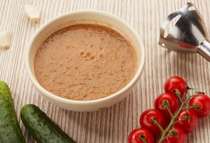 Рецепт «Гаспачо с шашлычком из креветок»: