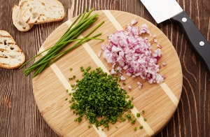 • Мелко порезать лук и укроп и хорошо перемешать.