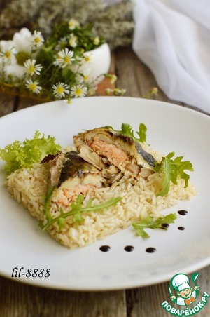 Вкусная, сочная рыба, которую можно подавать горячей, а так же в качестве холодной закуски. Для закуски рыбу прямо в фольге положить под пресс, остудить. а затем нарезать ломтиками. На гарнир я подавала коричневый рис.