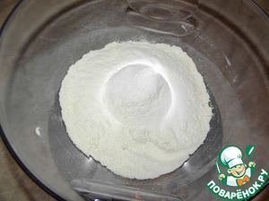• Отдельно в муку, добавить соду и соль, и тоже хорошо перемешать.