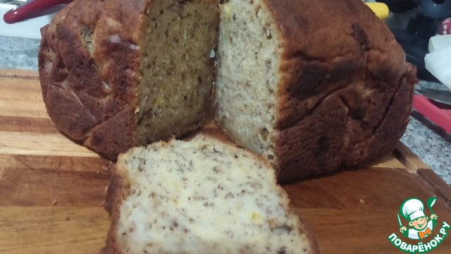 Очень вкусный кекс-хлеб! просто бананово-бананово! Орехи очень здесь в тему! Спасибо!!!