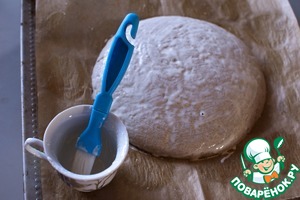 Емкость с тестом накрываем пленкой и оставляем на 1 час при температуре около 30 °С. -