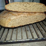 ЗАРАНЕЕ разогреваем духовку с камнем до максимума (250-260 °С). Выпекаем хлеб десять минут, затем уменьшаем температуру до 210 °С печем еще 40 минут.
