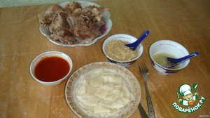 Пока мясо варится, замешиваем пресное тесто и даём ему настояться. -