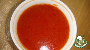 Томатную пасту жарим на масле, в конце жарки добавляем немного воды.