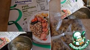 В кипящую воду кладем пакетики с рисом "Акватика Микс" ТМ Мистраль, убавляем огонь под кастрюлькой и оставляем вариться до готовности около 30мин.