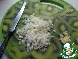 Пока тушится тыква, мелко нарезать лук и чеснок.
