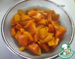 Тыква стала мягкой, дала сок и стала еще янтарней. Лишнюю жидкость нужно слить.