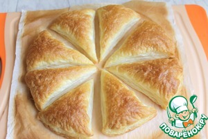 Вот такой рецепт нашла в немецком журнале. Немного переделала под свой вкус. Немцы предлагали делать мармелад с яболочного вина. Но когда я его попробала рекомендуемое вино... мне показалось это больше похоже на яблочный уксус. И решила взять просто яблочный сок. Тесто слоеное. На низ брала дрожжевое слоеное, но это было не обязательно, в рецепте было простое слоеное. Итак получился очень нежный тортик, со вкусом яблока!!! Кто любит все яблочное, этот торт для вас!