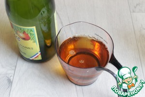 Теперь делаем мармелад. Ну я всетаки не удержалась, взяла немного этого вина. Вы смотрите сами, если хотите то добавте десертного любого вина. Итак нам нужен сок, желатин. Желатин зальем водой.