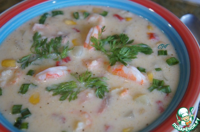 Рецепт «Чаудер с пшеном, креветками и кукурузой»: