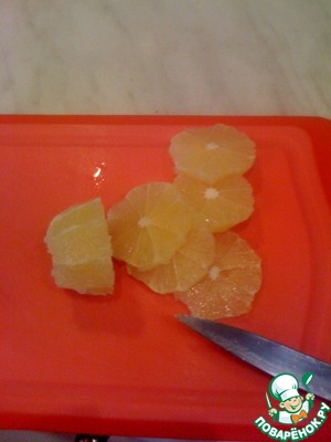 Лимон освободить от кожуры и косточек и нарезать тонкими дольками