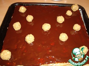 Я перед тем как убрать коржи в холодильник украсила их шариками, про которые писала выше, сделанными из обрезков этих же коржей.