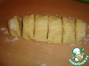 По истечении времени достать тесто из холодильника и разделить его на 6 одинаковых частей ( ну или почти одинаковых, по крайней мере постараться). Одну часть оставить, а остальные убрать назад в холодильник.