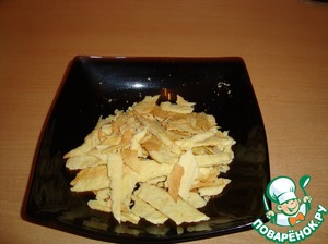 Обрезки сложить в тарелку, они могут еще пригодиться для чего-либо. Я из них сделала украшение, а можно и так скушать между делом, они очень вкусные.