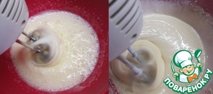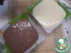 Разделить тесто на две равные части и в одну добавить какао = взбить.