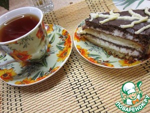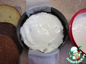 Укладываем коржи один на другой, пропитывая кремом (крем не жалеть).