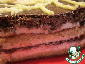 Верхний слой - это дно одного из коржей, чтоб верх был ровный.