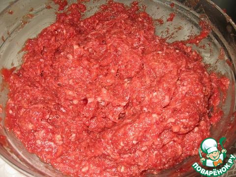 - Фарш мясной (У меня смесь говяжьего и свинины, надо пожирней фарш) — 1 кг