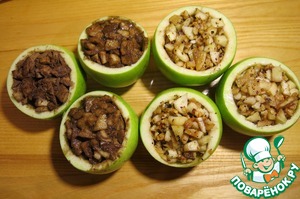 Начиняем яблочные "чашечки". В процессе приминаем ложкой.