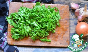 6. Этот шаг очень интересный, о нём надо рассказать. Я была удивлена, когда видела, что в Камеруне и Чаде в соусы добавляют отломанный кусочек серого камня. Соус начинает пенится и все овощи и травы в нём становятся мягкими. Этот камень оказался природной содой. Поэтому, если вы не хотите чувствовать кусочки лука и чеснока, то добавить соду. Всё хорошо перемешать.