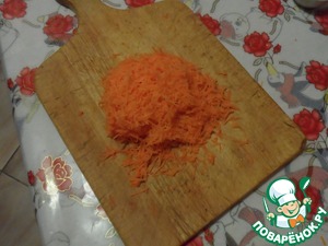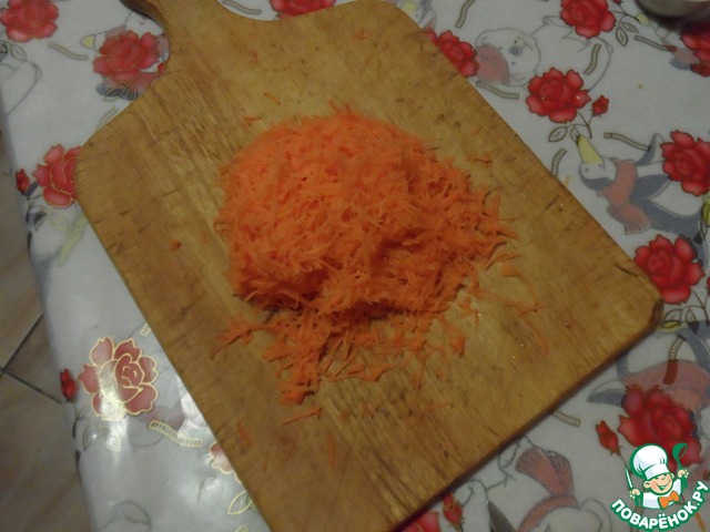 Сварить стакан риса. Морковь очистить и натереть на мелкой терке.